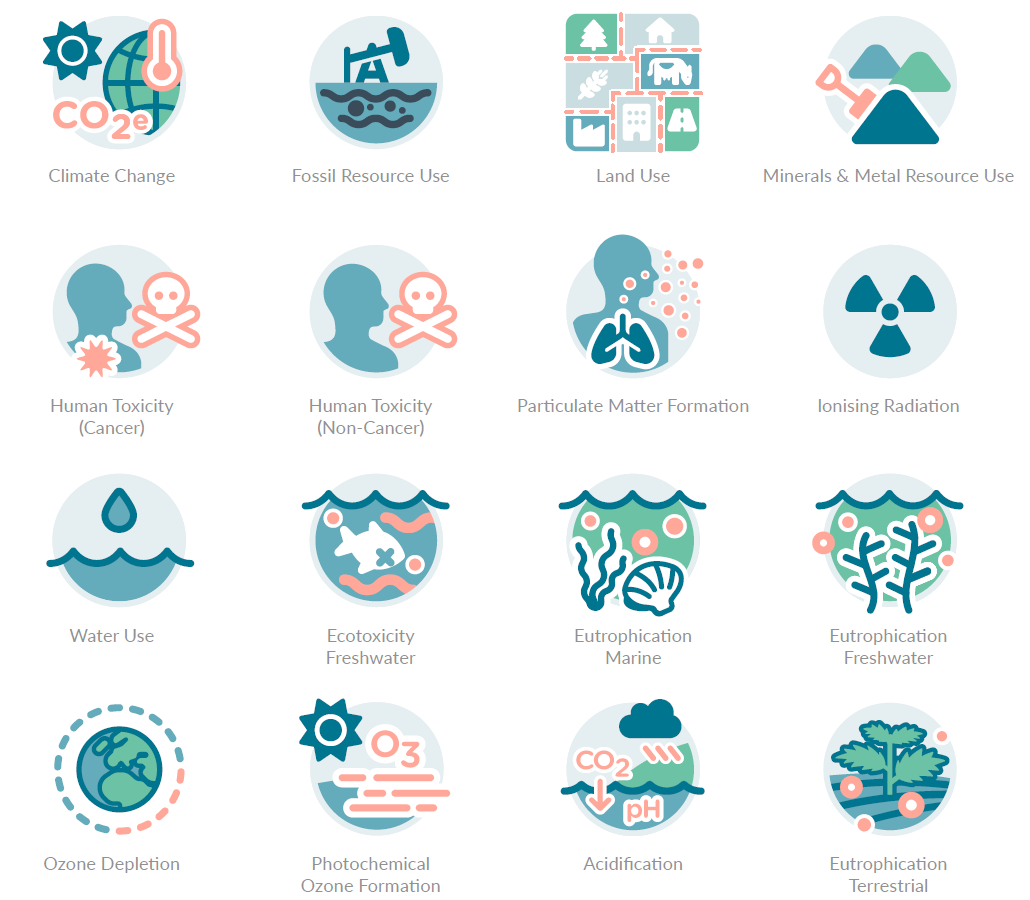 Hoewel CO₂-reductie de meest urgente uitdaging is, hanteren we een brede ecologische benadering. We evalueren voor zoveel mogelijk producten en processen levenscyclusanalyse (LCA) data, waarbij alle 16 impactcategorieën aan bod komen. Zo monitoren we dat de voorgestelde oplossingen geen negatieve (of slechts minimale) verschuivingen van de milieu-impacten naar andere impactcategorieën inhouden. We houden hierbij ook rekening met social of governance impacten, denk aan de werktijd die verpleegkundigen spenderen aan een bepaalde taak.